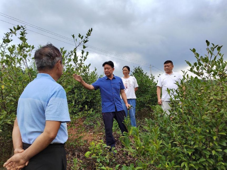 了解到杨河村山林丰富,野生油茶生长茂盛,朱才坤找来油茶专家曾祥卫实地考察山林种植情况,共同谋划油茶产业发展。