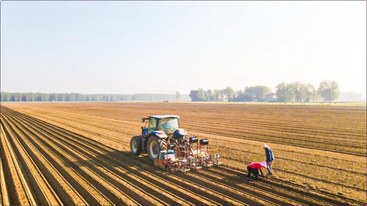 田予爱不满足现状,聘请专业人员自研改装适应山地耕作的4台小型机械。经过上百次试验,研制出了集起垄、播种、铺设滴灌带三种功能于一体的农机装备。这种由2104型号拖拉机带动的大型农机装备,日作业面积60亩,种植效能比过去提高了3倍。