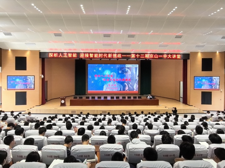 4月17日下午,京山一中报告厅内座无虚席,由京山市科协联合京山一中举办的第十二期“京山一中大讲堂”成功开讲。荆楚理工学院人工智能学院副教授高正明受邀担任主讲人,以“探析人工智能,迎接智能时代新挑战”为主题,为在场师生带来了一场精彩纷呈的科技盛宴。京山市科协党组书记何仕平、党组成员晏珊,京山一中副校长张本君及高一年级全体理科班学生共同参与此次活动。