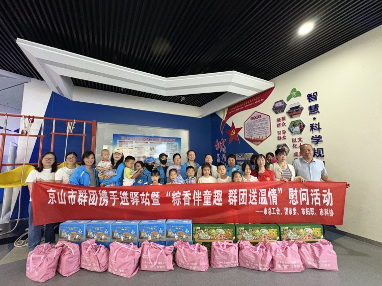 5月24日上午,京山市科技馆内欢声笑语不断。值“六一”儿童节与端午节双节临近之际,京山市科协携手京山市总工会、京山团市委、京山市妇联等部门,共同开展“粽香伴童趣 群团送温情”慰问活动,为12名女骑手及其12名子女送上双节关怀,用科技与温情传递群团组织的温暖。