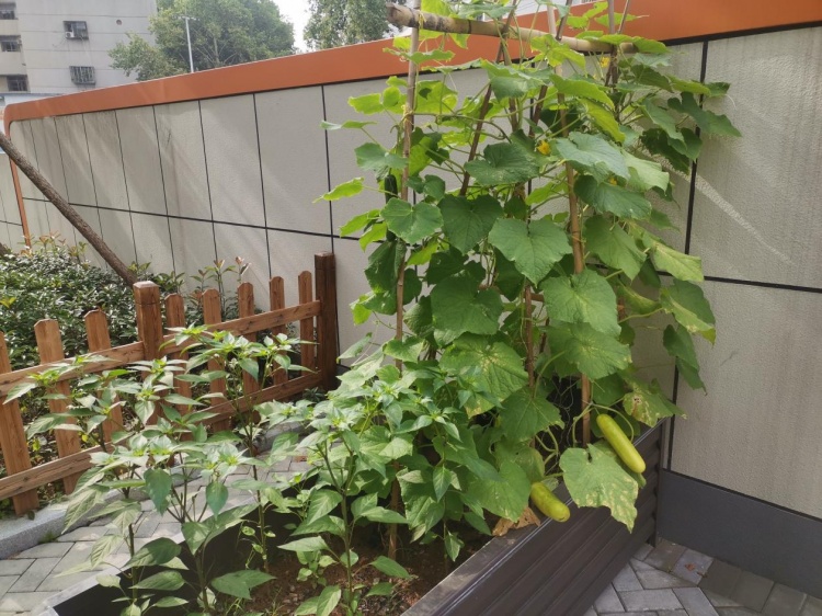 据悉,学校引入经过太空特殊环境诱变的种子,包含豇豆、黄瓜、辣椒等多个品种。这些种子经过多轮筛选培育,具备高产、抗病等优良特性。为让学生直观感受太空育种的奥秘,激发学生对宇宙的无限遐想,学校科学组教师指导学生将太空种子埋进特制的培育箱,每天轮流记录温度、湿度,像守护珍宝一样守护着这些来自星辰的希望。经过数月的精心照料,如今,校园农场终于迎来了丰收时刻:成串的新鲜豇豆饱满圆润、翠绿的太空黄瓜鲜嫩多汁、太空辣椒青绿透亮。