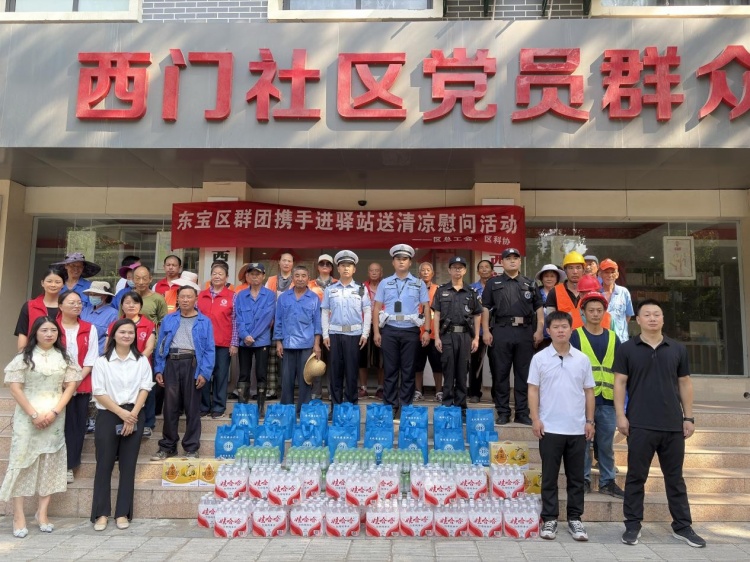 骄阳似火,热浪袭人。为切实关怀高温下坚守岗位的户外劳动者,7月30日,东宝区科协联合区总工会,在西门社区工会驿站共同开展“群团携手进驿站‘送清凉’”慰问活动,为奋战在酷暑一线的劳动者送去群团组织的关怀与夏日的清凉。