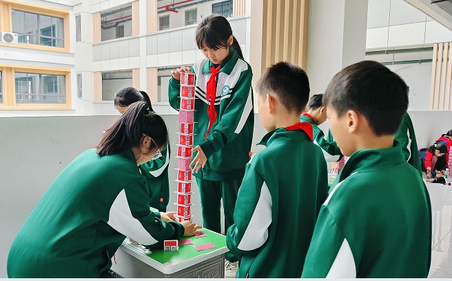 科技节活动设置了分年级的科学实践挑战,每个项目都经过精心设计:低年级注重动手能力培养,一年级“一纸留长”比赛中,最高纪录可将一张A4纸撕出25米的长条;中年级探索科学原理应用,三年级"纸飞机掷远"最佳成绩达36.5米;高年级挑战工程实践,六年级"纸桥承重"项目中,优胜组用120克材料搭建的纸桥成功承重12.3公斤。