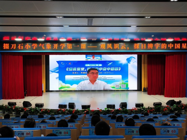 国家卫星气象中心(国家空间天气监测预警中心)专家讲授《观风识云,探日辨宇的中国星》,带领大家走进风云气象卫星的世界。荆门市气象教育特色学校掇刀石小学的师生们,齐聚学校报告厅,踊跃参加此次活动,并进行连线互动。同学们整齐端坐,聚精会神,一张张专注的面孔,闪烁着求知的火花。