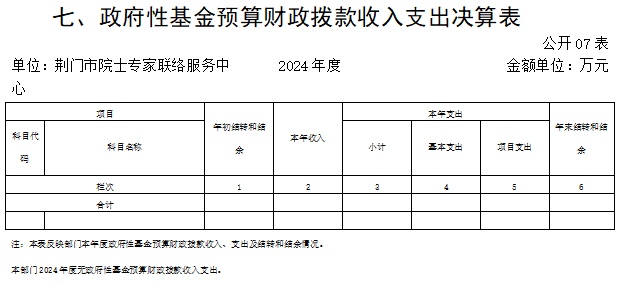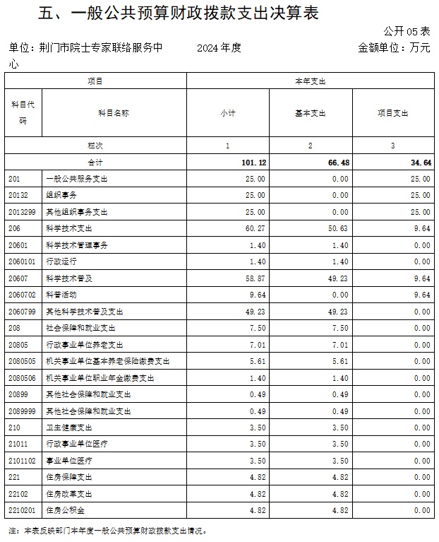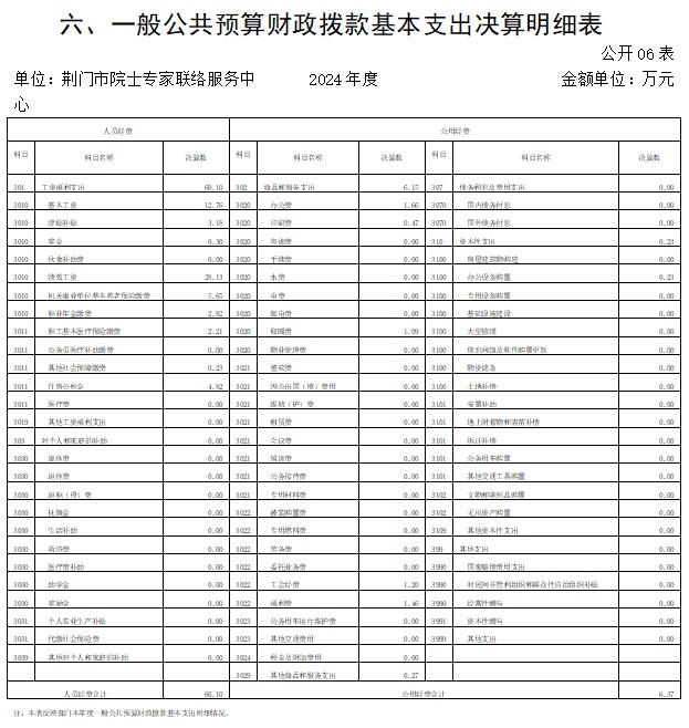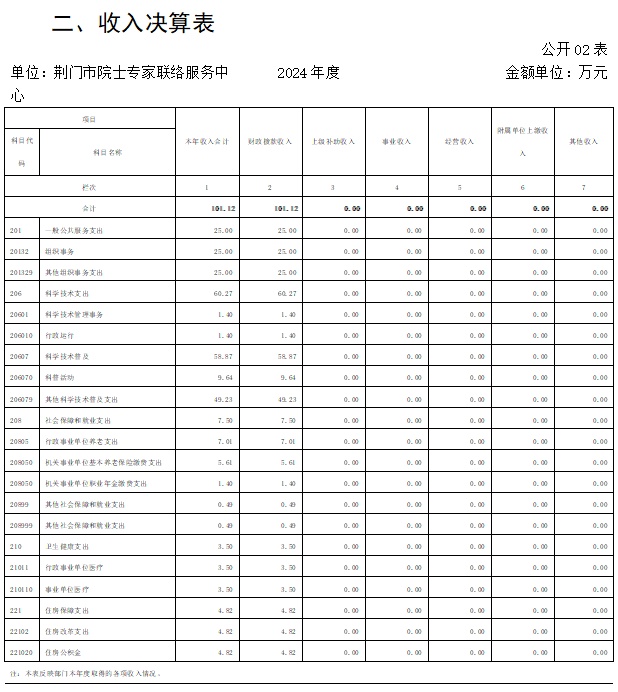 第二部分 荆门市院士专家联络服务中心2024年度部门决算表