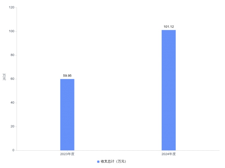2024年度收、支总计均为101.12万元。与2023年度相比,收、支总计增加41.17万元,增长68.7%,主要原因是本年度增加了院士专家工作站建站补助资金及人员经费。