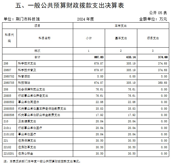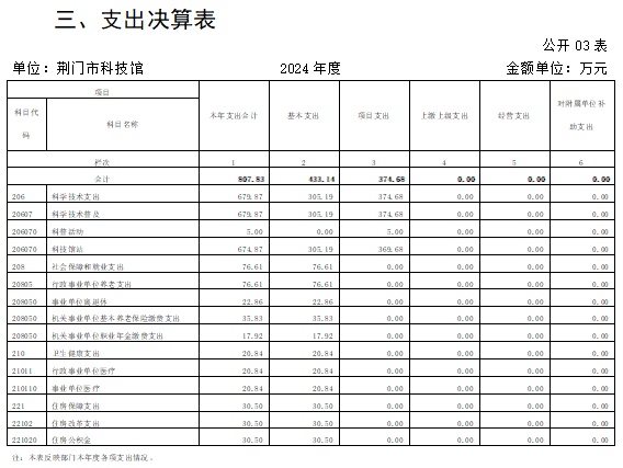 2024年度财政拨款收、支总计均为807.83万元。与2023年度相比,财政拨款收、支总计各减少684.95万元,下降45.9%。主要原因是青少年科技馆改造项目2023年收支了999.59万元,2024年青少年科技馆改造项目收支了290.42万元,项目支出减少了709.17万元,所以收、支总计减少684.95万元。