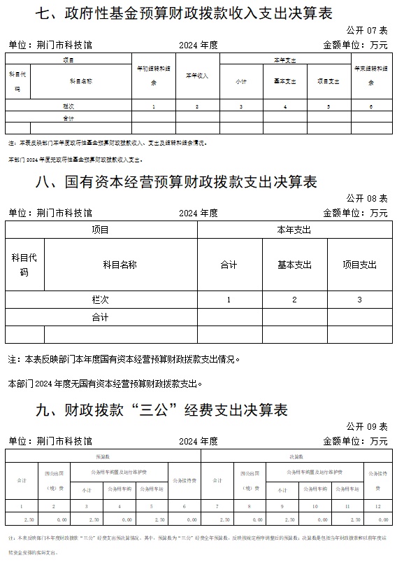2024年度财政拨款收入中,一般公共预算财政拨款收入 807.83万元,比2023年度决算数减少684.95万元,减少主要原因是青少年科技馆改造项目2023年收支了999.59万元,2024年青少年科技馆改造项目收支了290.42万元,项目支出减少了709.17万元,所以收、支总计减少684.95万元。政府性基金预算财政拨款收入0.00万元,比2023年度决算数持平,持平主要原因是没有政府性基金预算财政拨款收入。国有资本经营预算财政拨款收入0.00万元,比2023年度决算数持平,持平主要原因是没有国有资本经营预算财政拨款收入。